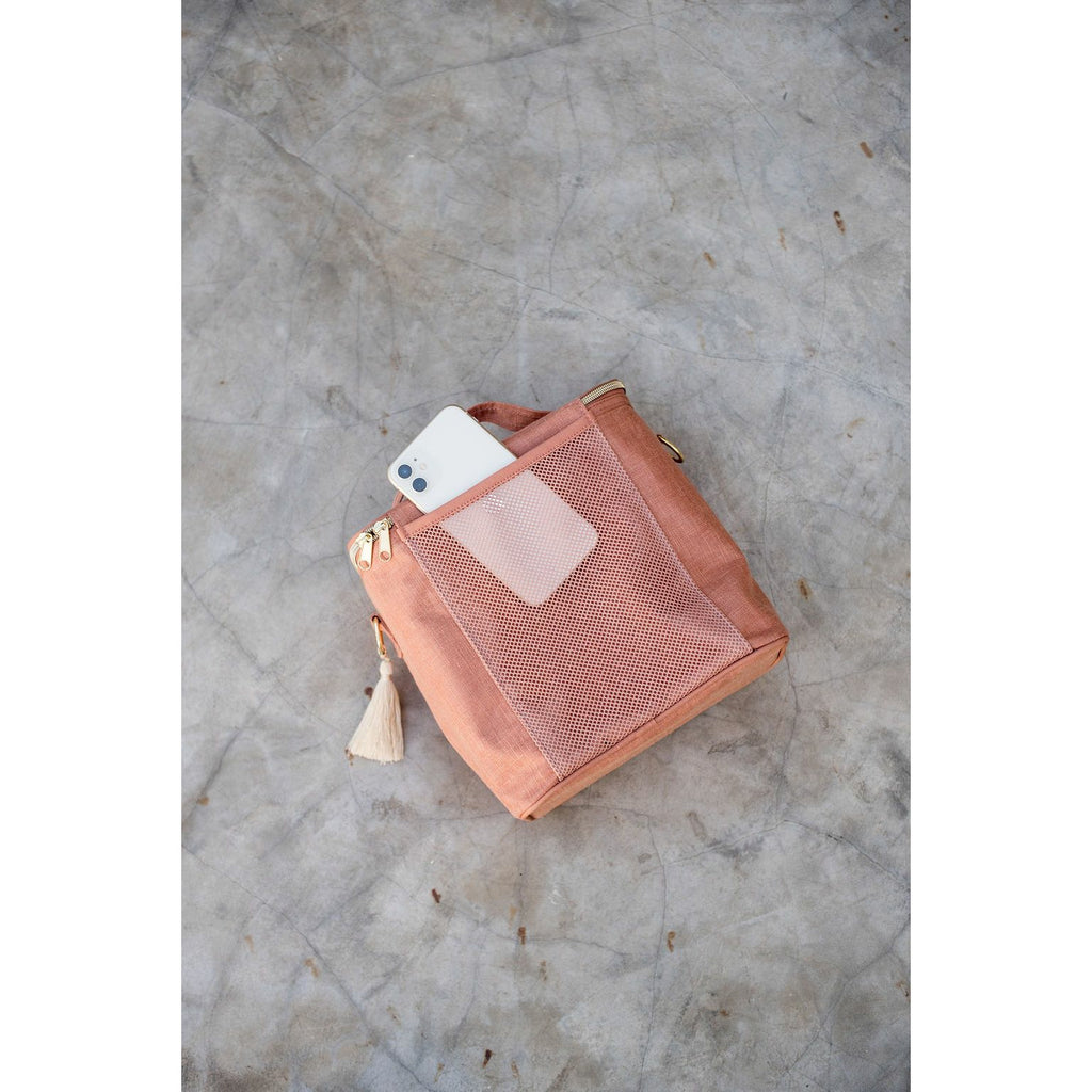 Time to elevate your on-the-go lunch game. A contemporary version of our large cooler bags, our Lunch Poches (French for "Pocket") were designed to complement foodie, fashion and wellness focused lifestyles. It's time to stop using shopping bags to carry your lunch and elevate the lunch experience. Purposeful features include a removable insert lining for easy cleaning, a messenger strap to double as a purse, and an inspirational name tag to remind you to live with intention. Constructed of our signature linen blend with tonal trims and gold hardware, our Block Brush print has a sophisticated, minimal vibe.