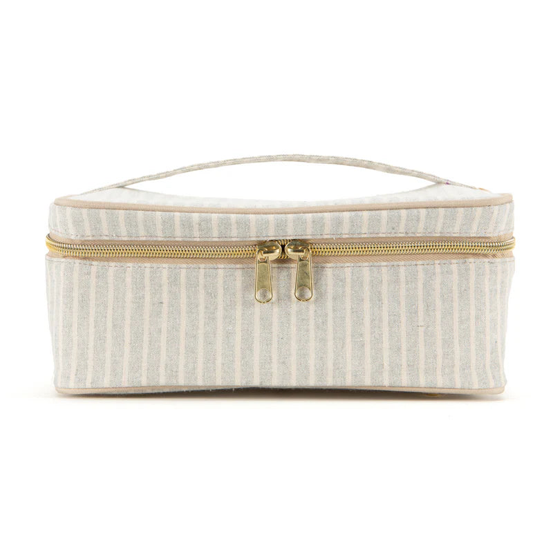 Elegant with a little touch of sparkle! The Essentials Poche is the perfect way to keep all your favourite self-care essentials in one place. Equipped with elegant gold hardware, an easy-to-carry handle, metal feet to avoid wet countertops and a removable insert for easy cleaning and organization, this zippered toiletry bag is the ideal, no-fuss solution for storing products, brushes, accessories and more. It even doubles as a stylish pencil case!