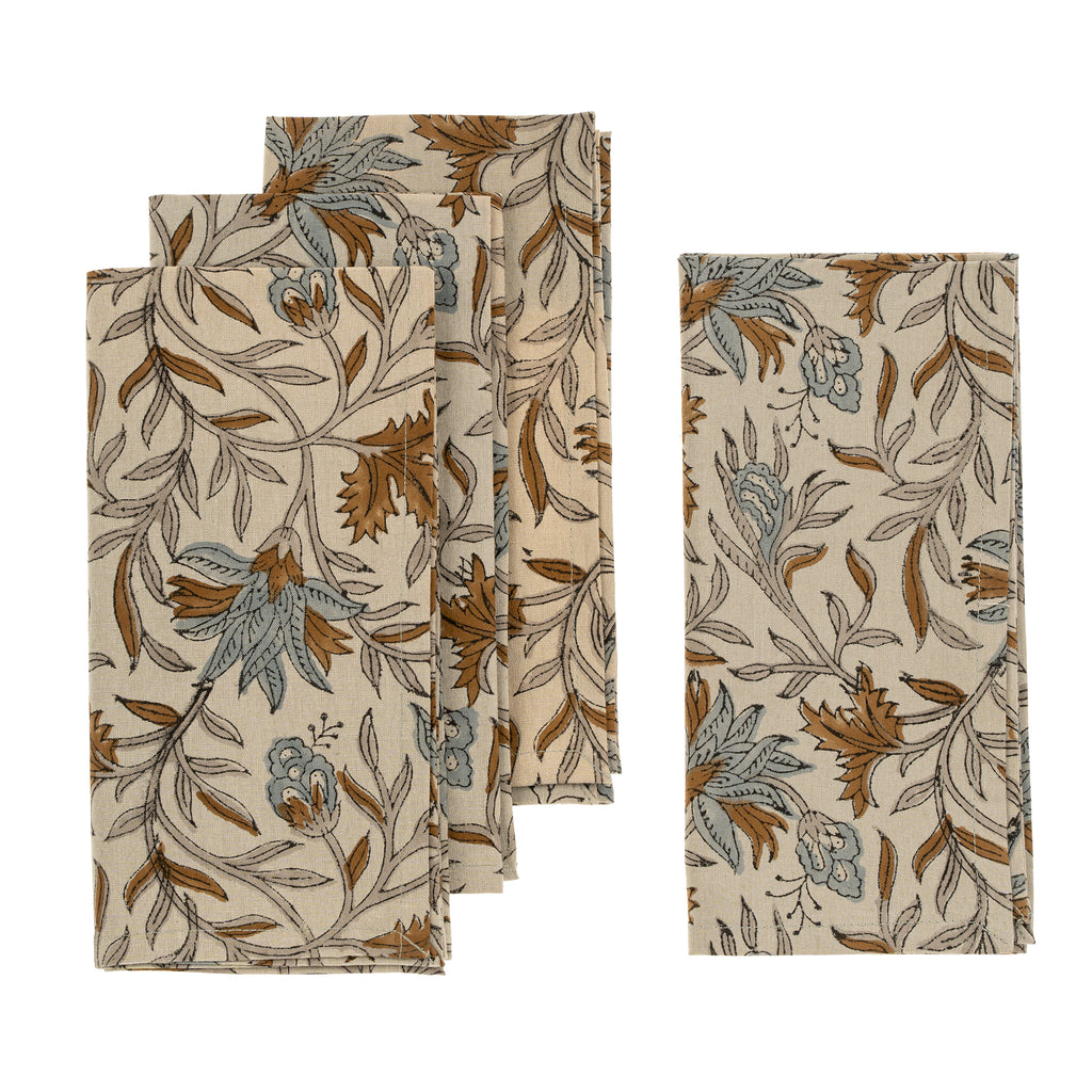 Set your table with timeless style using the Cecily Block Print Napkins. This set of four features hand block printed designs in warm, fall-inspired tones that bring artisanal character to any meal.