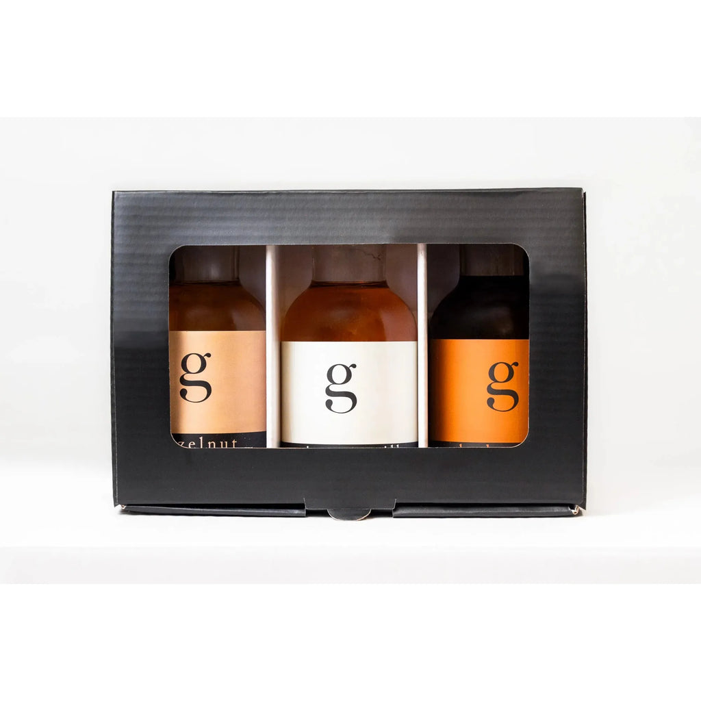 Indulge in the Coffee Syrups Gift Box, featuring three delicious flavours - Mexican Vanilla, Salted Caramel, and Hazelnut. Elevate your morning coffee routine or up your latte game with these high-quality syrups. Perfect for gifting or treating yourself to a little sweetness.