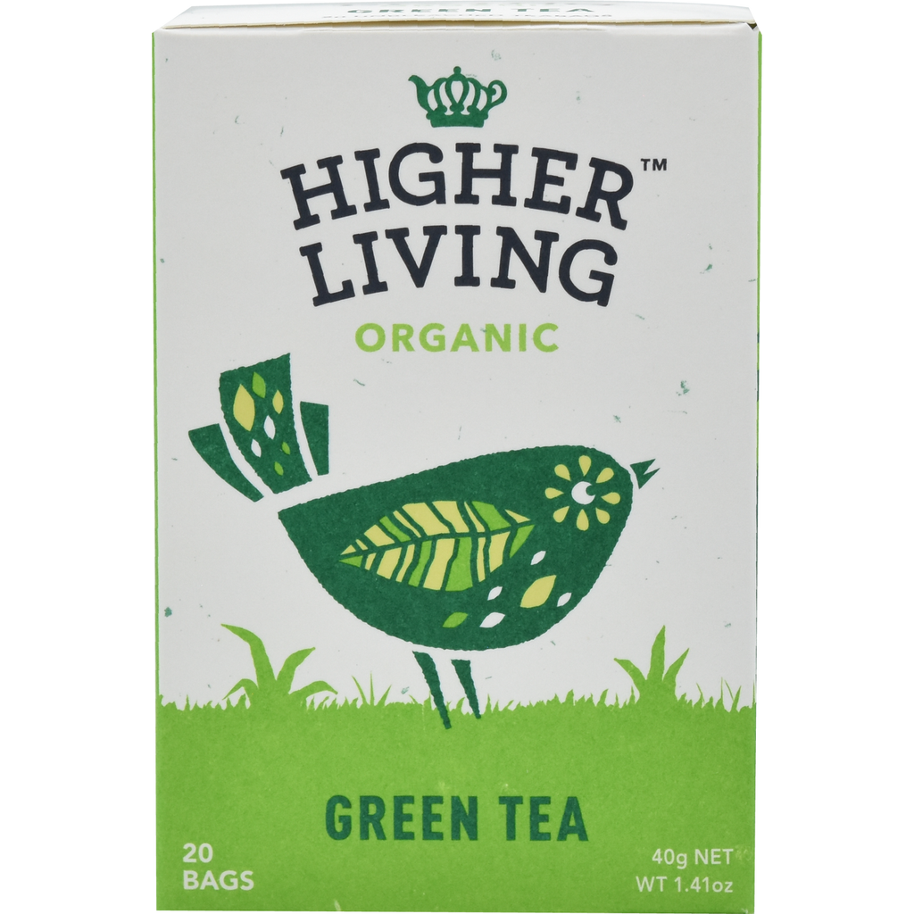 Higher Living Tea Green Tea offers a fresh and light experience crafted from the finest organic green tea leaves. Each cup delivers a clean, refreshing taste that supports your well-being throughout the day. This pack contains 20 unbleached teabags, ensuring a natural and pure brew every time.