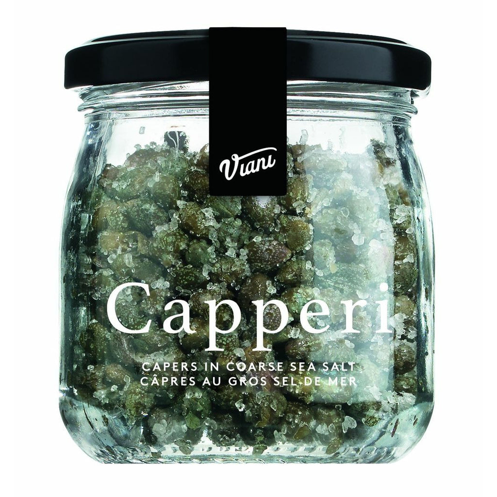 Small capers from the island of Salina preserved in sea salt. Rinse thoroughly to enjoy their intense, elegant taste in tuna and vegetable salads, vitello tonnato, and savoury dips.