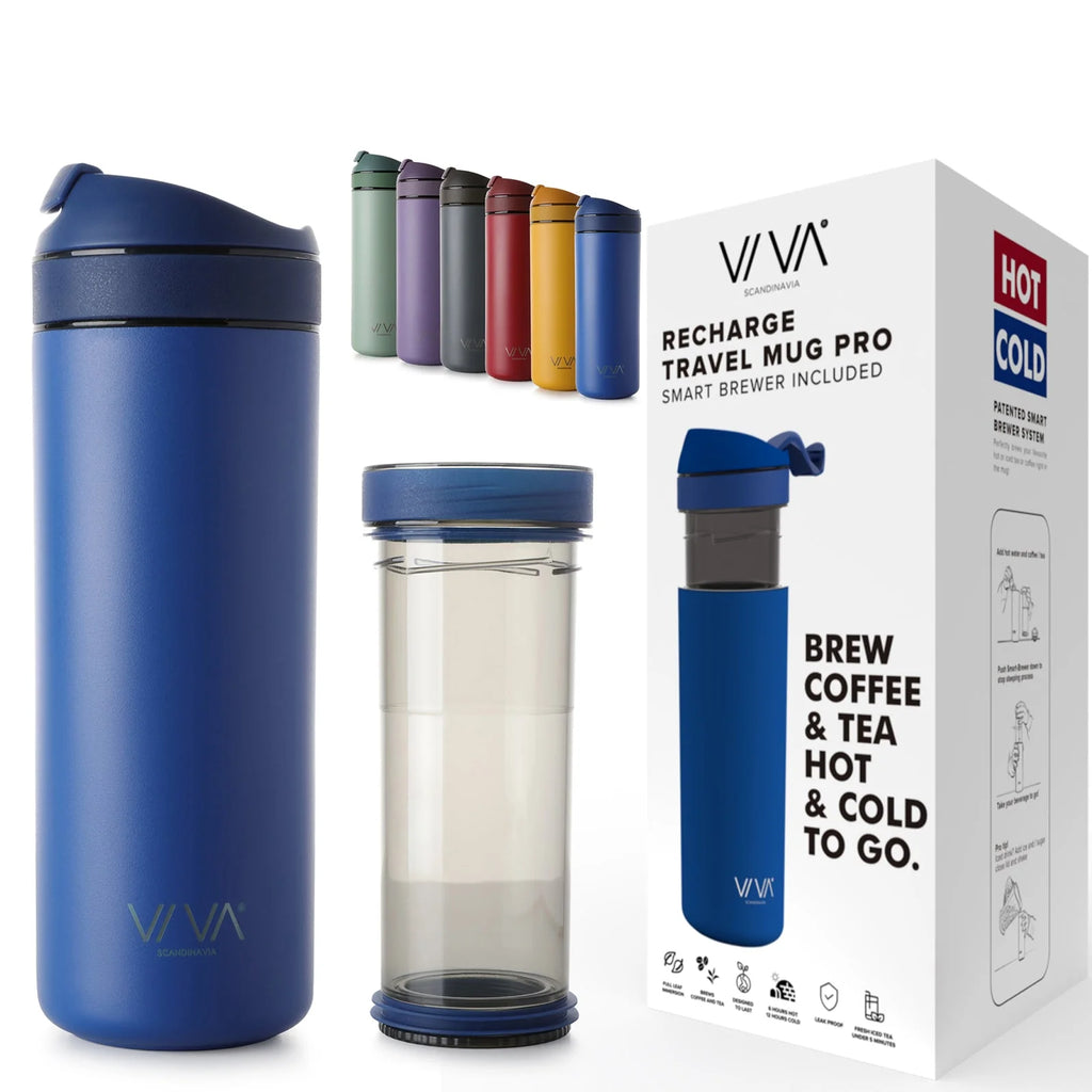 The Recharge Travel Mug in Blue is your all-in-one companion for fresh coffee or tea wherever you go.