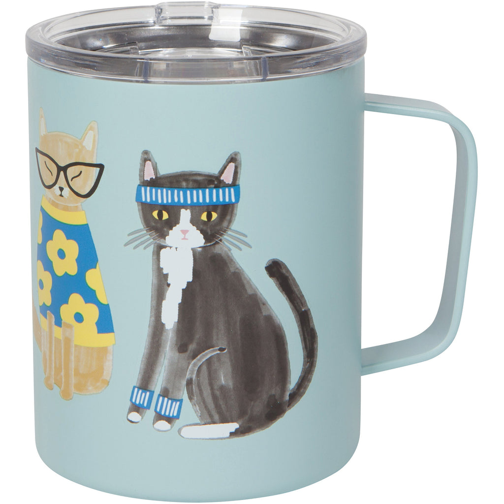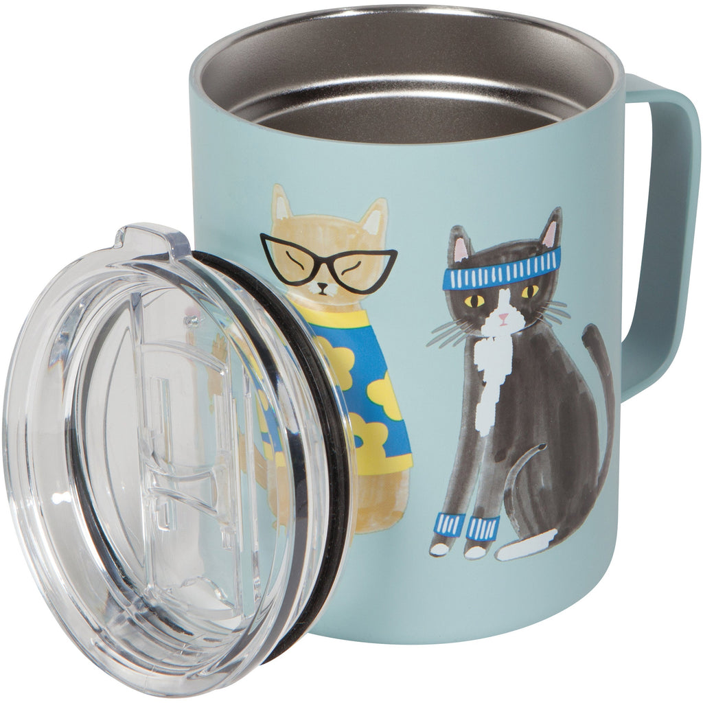 Wander, explore, and take in the day accompanied by your favourite kitties and a warm bevvie. This lidded stainless steel mug will keep your coffee or tea hot while you commute or sit at your desk.